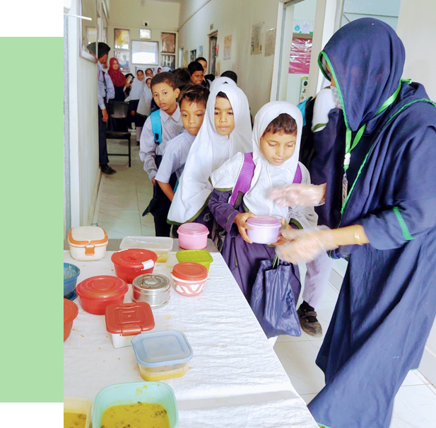 In December 2022, FBF launched a pilot milk-feeding program in Mehran Town. The program identified 33 deserving students in need and began providing them with a daily meal in addition to milk. The results are promis- ing! Children are showing increased vitality, fewer illnesses, and even some weight and height gains.